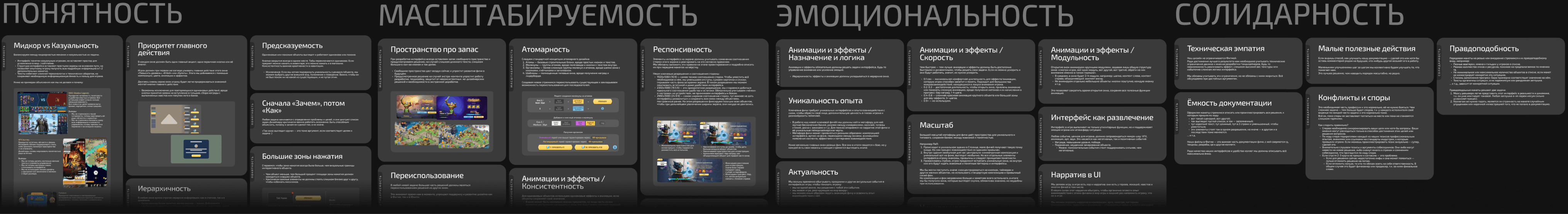 Это был набор прикладных ориентиров: правила проектирования интерфейсов, рекомендации по оформлению решений в документации, нюансы взаимодействия игроков с игрой и подсказки о том, как дизайнерам эффективнее работать со смежными командами.
