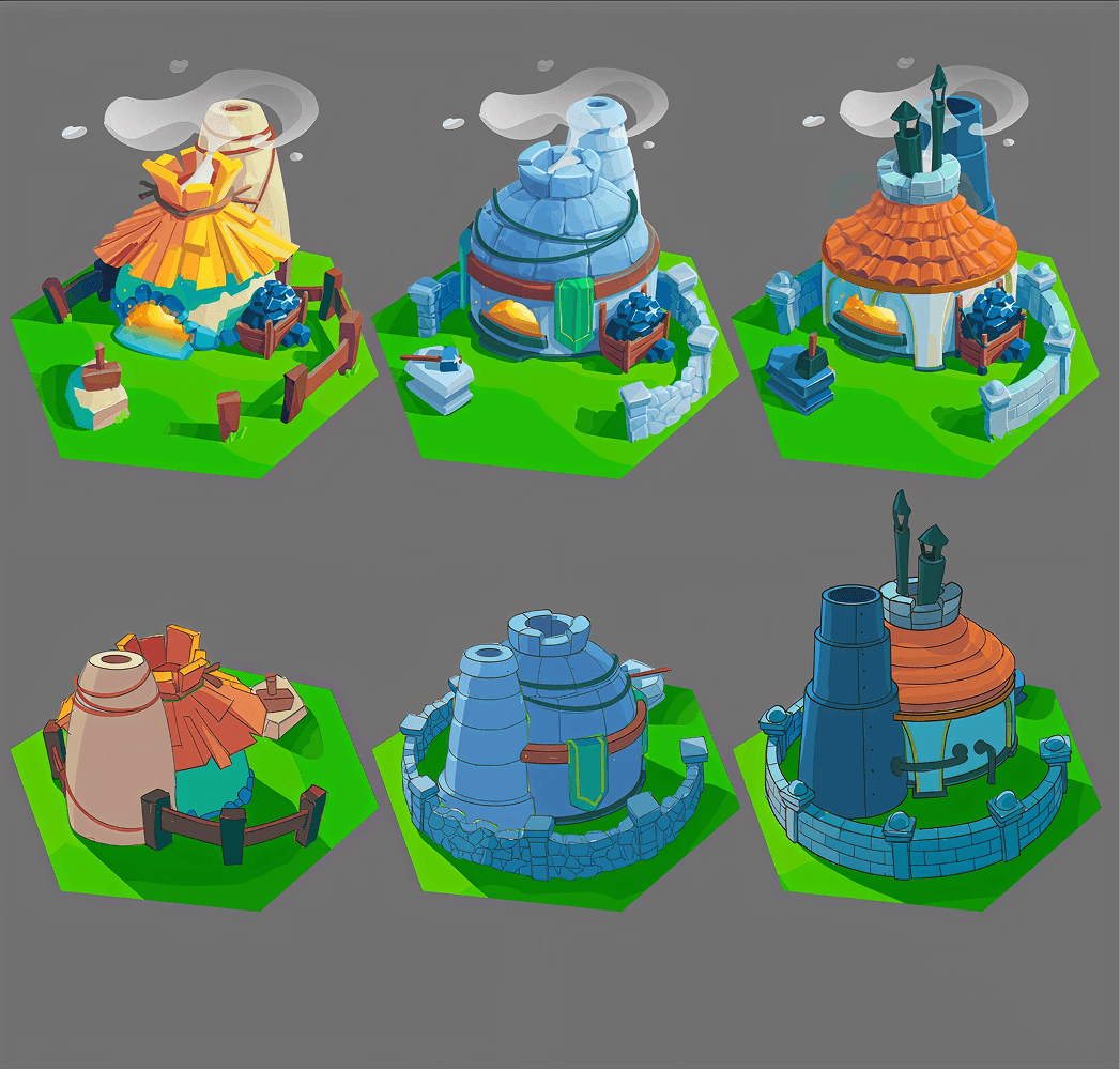 Моя ключевая зона ответственности — концепт и скетч логотипа: форма, силуэт, палитра, соответствие жанру и сеттингу, читаемость и характер. Финальный рендер я передавал другим художникам, чтобы поскорее взять следующую задачу в работу.